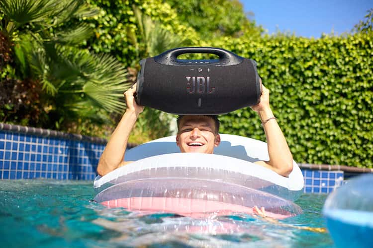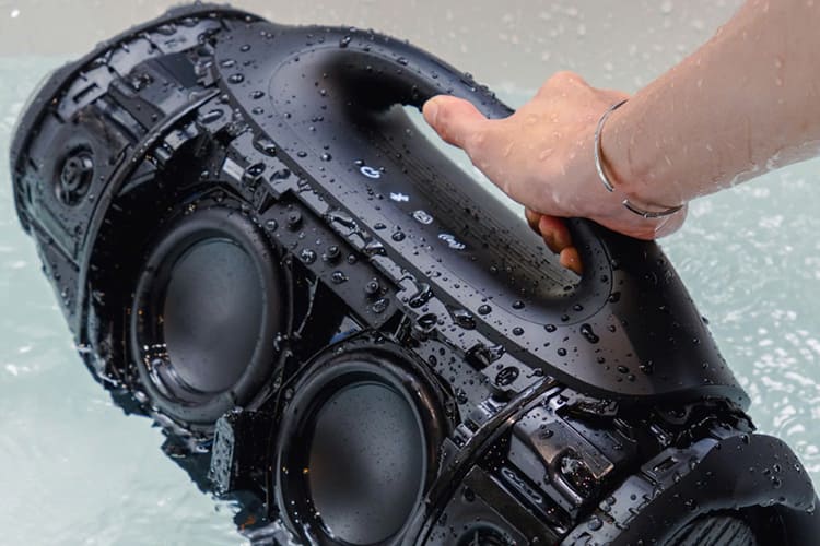 Loa có khả năng chống nước với chuẩn IP67 (ngâm nước ở độ sâu 1.5m tối đa 30 phút), bạn có thể sử dụng JBL Boombox 4 trong môi trường bụi – bên cạnh hồ bơi ngoặc ngoài biển – dưới trời mưa. JBL Boombox 4 còn rất bền khi rơi ở độ cao nhất định.