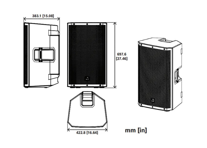 Loa karaoke Electro Voice ZLX 15P G2 có kích thước 697.6mm x 422.8mm x 383.1mm (trọng lượng 16.78kg), dù hơi nặng nhưng có tích hợp tay cầm ở các mặt của loa giúp việc di chuyển trở nên dễ dàng (lắp đặt cũng thuận tiện và linh hoạt hơn).