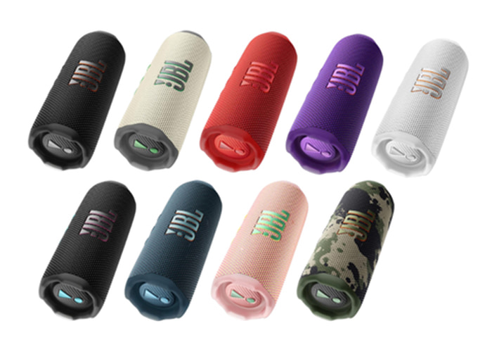 JBL Flip 7 có 9 màu: BackBlack & OrangeWhiteRedPinkSquadPurpleDesert SandBlue. Vẫn là hình trụ “burrito”, nhưng được trau chuốt hơn về chi tiết. Vỏ loa được bao bọc lớp vải lưới cao cấp, hai bên hông có viền cao su.
