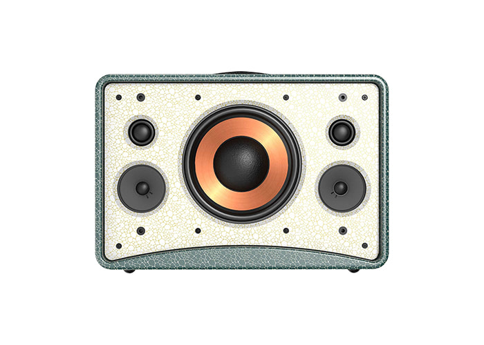 Cấu hình âm thanh 2.1 với 5 loa thành phần: 2 loa tần số cao (Treble 2.5cm), màng dome lụa mềm kết hợp nam châm Neodymium cực mạnh với hệ thống giải nhiệt Ferrofluid. 2 loa tần số trung cao (Mid 7.6cm), màng loa dạng nón từ chất liệu Pulp với đặt tính siêu nhẹ và đáp ứng nhanh chuyển động. Ở giữa là 1 loa siêu trầm (20.3cm), màng loa Aluminium (công nghệ Hardened Concave AI-cone) có độ cứng cao giúp chịu lực tốt và có thể kiểm soát chuyển động chính xác ở biên độ lớn.