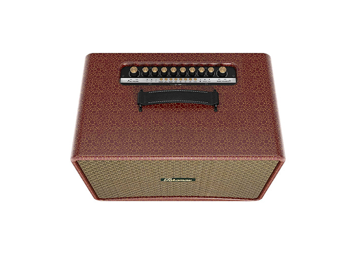 Mặt trên là bảng điều khiển kim loại, cả nút bấm (mode và các chức năng) và núm vặn (volume / bass / treble / reverb / delay / echo), có led hiển thị trạng thái. Mặt sau chứa các cổng kết nối. Mặt dưới có 4 chân đế giúp loa đứng vững khi hoạt động.