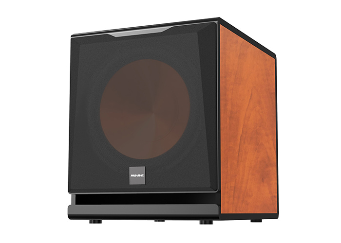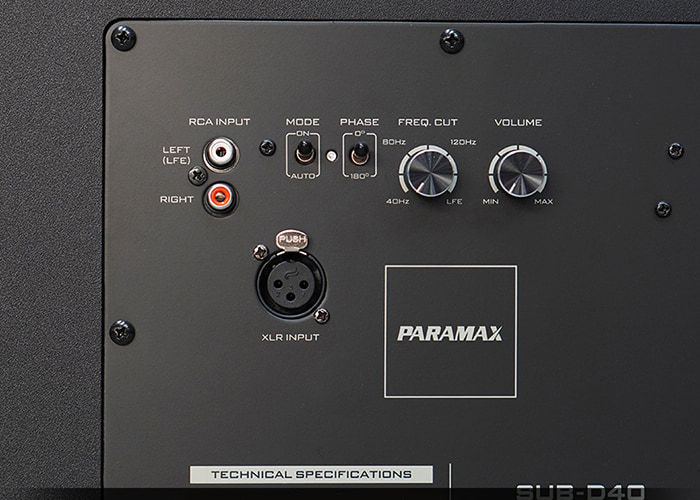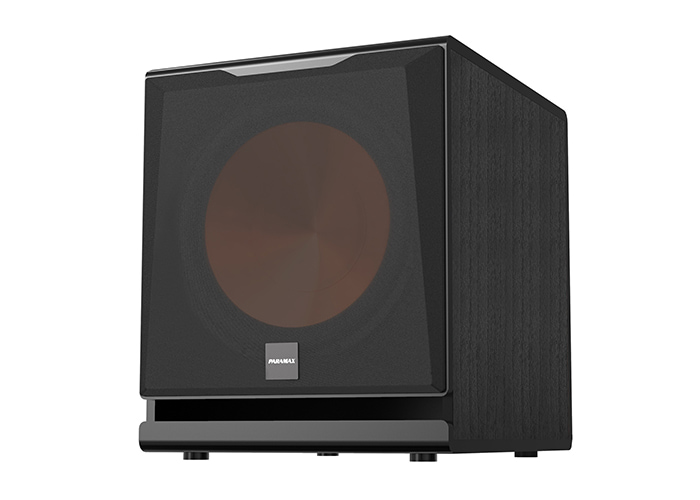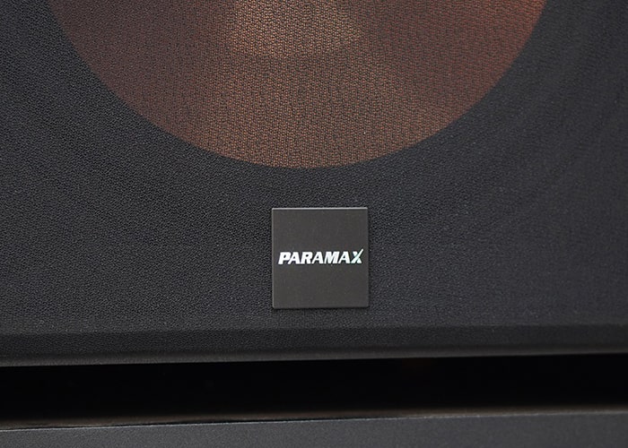 Mặt trước là màng loa nhôm phủ Anodizing đồng sáng bóng tạo sự nổi bật (kèm tấm lưới ê-căng bảo vệ củ loa được gắn bằng nam châm – có logo Paramax), có rãnh thông hơi giúp truyền năng lượng của dải trầm đến người nghe. Mặt sau là nơi bố trí các núm vặn vật lý quen thuộc của loa sub (nút âm lượng / nút cắt tần số / nút điều chỉnh pha), bên cạnh là cổng kết nối.