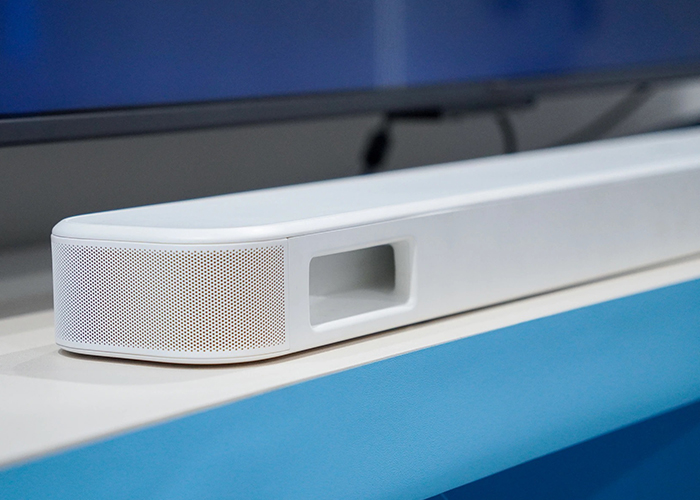 Loa thanh có kích thước: rộng 940mm x cao 50.5mm x dày 104mm, dễ dàng đặt dưới TV mà không cản trở tầm nhìn (hãng cũng cho sẵn móc treo để bạn có thể gắn lên tường). Vỏ được làm từ chất liệu nhựa cao cấp với mặt lưới kim loại phía trước.