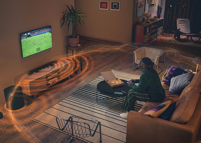 Ứng dụng công nghệ MultiBeam 3.0 kết hợp với Dolby Atmos, tạo ra âm vòm giả lập 3 chiều (hiệu ứng sẽ tốt nhất khi ở trong phòng có tường phẳng với không gian vừa phải). Bạn sẽ cảm nhận được âm thanh từ mọi hướng như đang ở trong rạp phim.